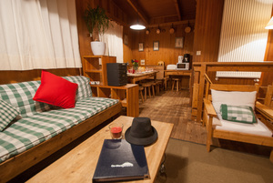 SALON : Thermostat chauffage - 1 meuble à casiers séparant coin séjour et coin repas – 1 grosse lampe avec abat-jour – 1 chaine HIFI avec 2 enceintes - 2 appliques murales – 1 baromètre – 1 suspension électrique – 1 tapis – 1 carte IGN en relief – 2 paires de rideaux – 3 fauteuils avec coussins et housses - 1 banquette avec